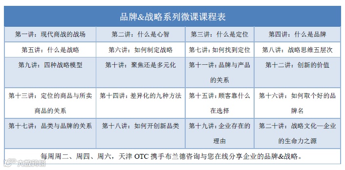 每周的周二、周四、周六,我们将连续为您推出品牌&战略系列线上微课,欢迎企业朋友们持续关注。如果您在收听过程中有任何心得或疑问,欢迎在微信公众号留言反馈给我们,我们的服务专员会为您搭建与讲师互动的桥梁。