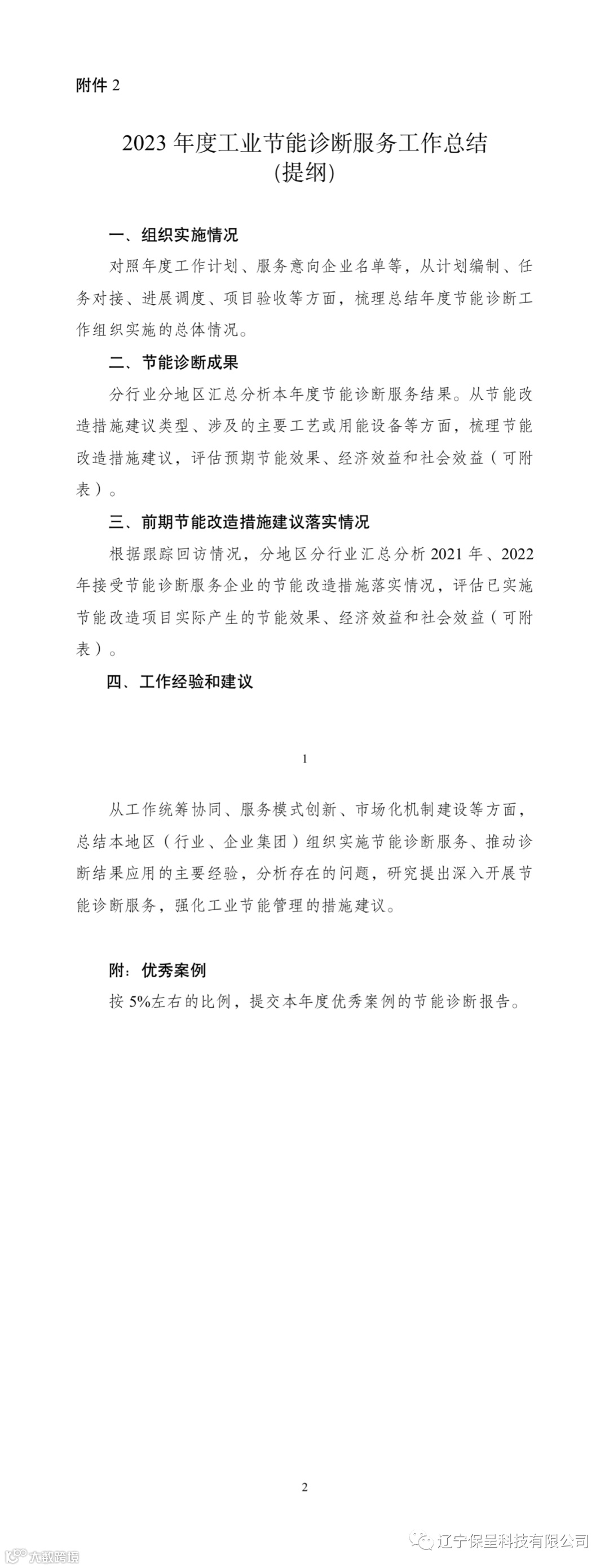 辽宁保呈科技有限公司本期保呈快讯内容:关于《工业和信息化部办公厅关于组织开展2023年度工业节能诊断服务工作的通知》-内容分享