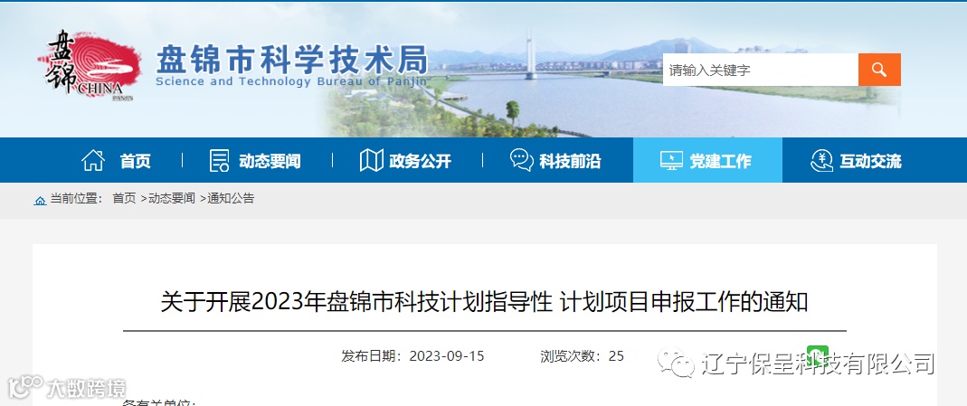 保呈快讯内容:关于《关于开展2023年盘锦市科技计划指导性 计划项目申报工作的通知》-内容分享