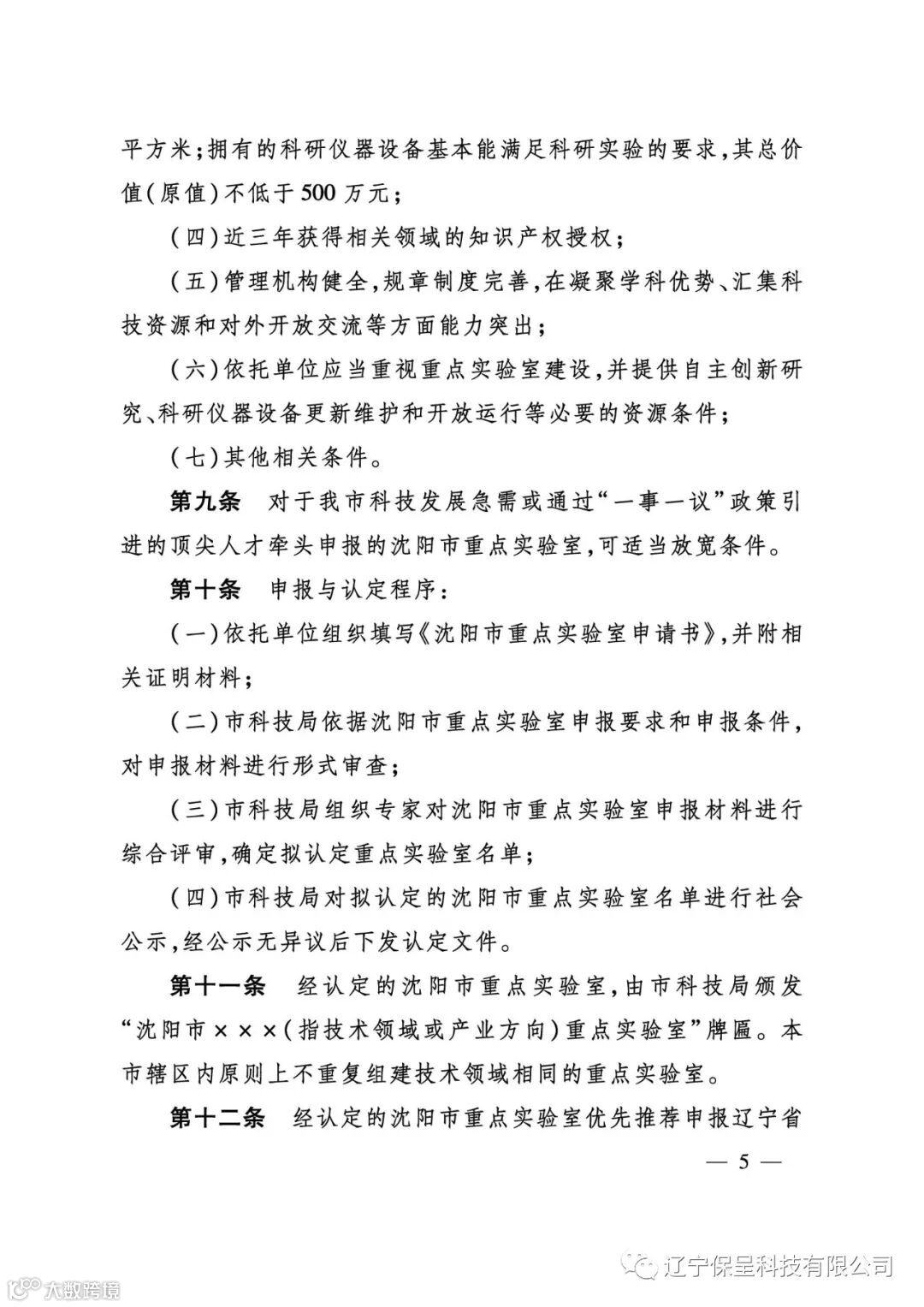 保呈快讯内容:关于《沈阳市科技局关于申报认定(组建)2023年沈阳市科技创新平台的通知》-内容分享