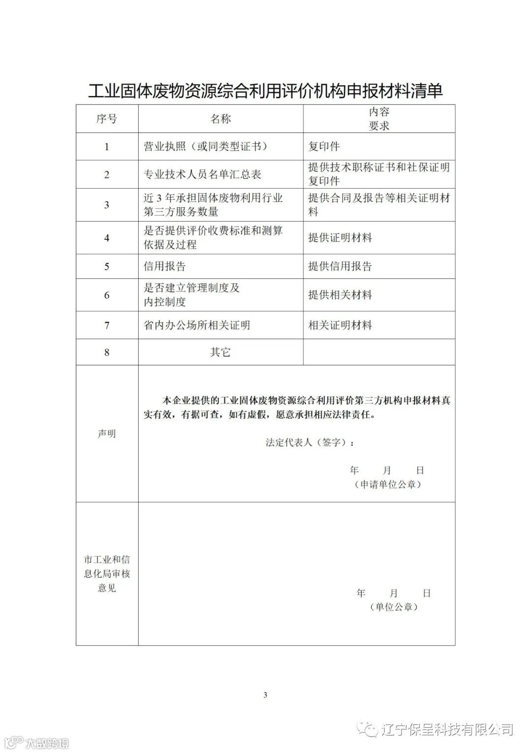 辽宁保呈科技有限公司保呈快讯内容:关于《沈阳市工业和信息化局关于开展工业固体废物资源综合利用评价机构推荐工作的通知》-内容分享