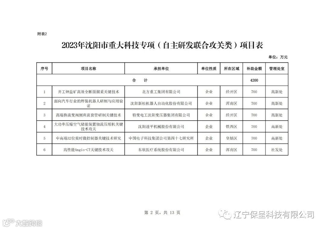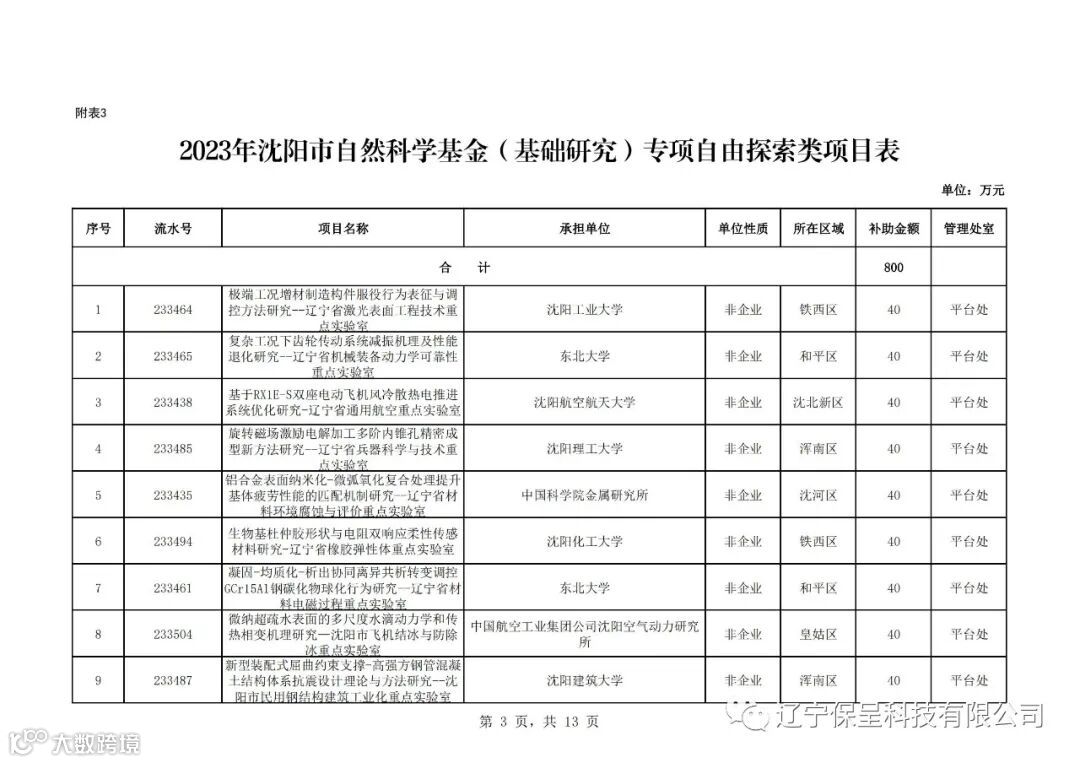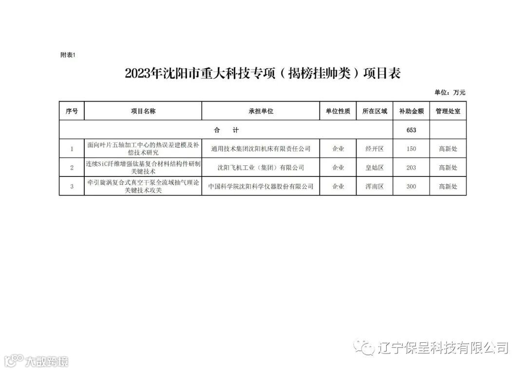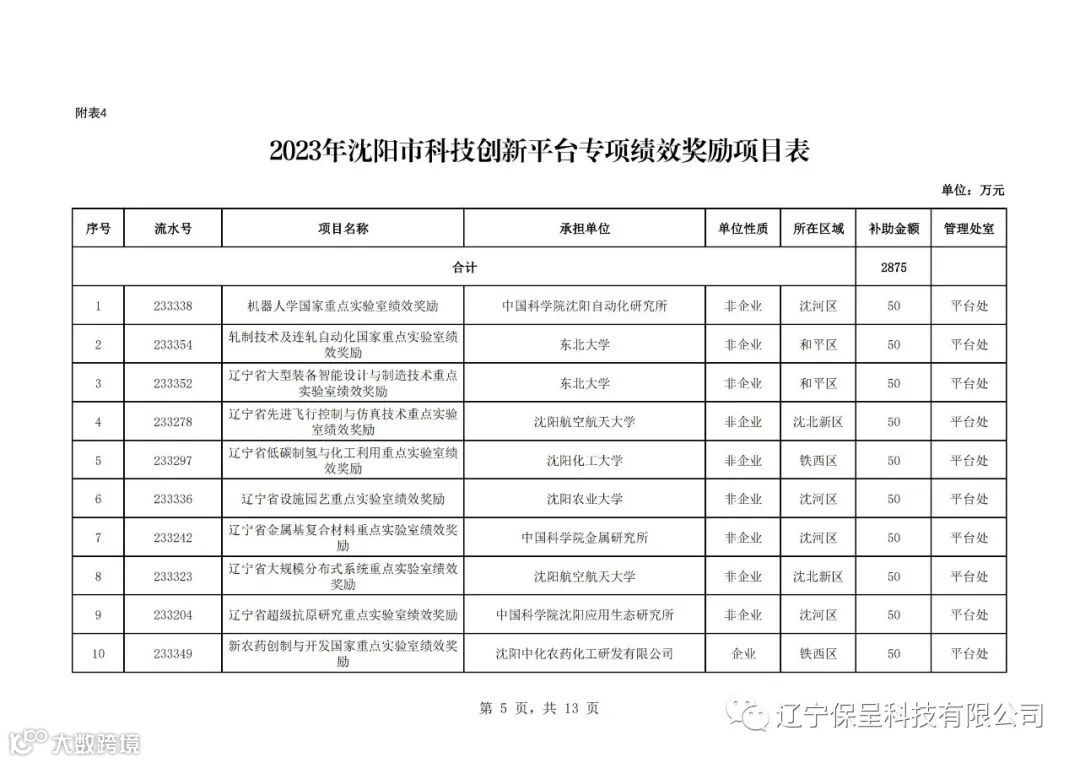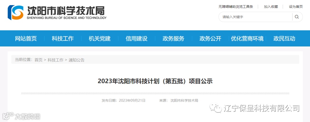 保呈快讯内容:关于《2023年沈阳市科技计划(第五批)项目公示》-内容分享