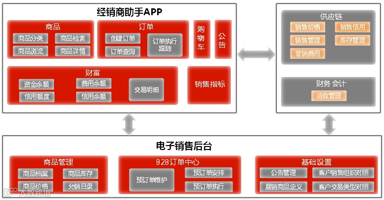 以客户为核心的移动营销应用,是企业级移动应用方案的主战场。利用移动互联网将企业的外部伙伴(通路)、客户(销售终端、分销商)、业务代表、会员等角色融合为企业业务的前台,将企业销售业务外延进行有效拓展。