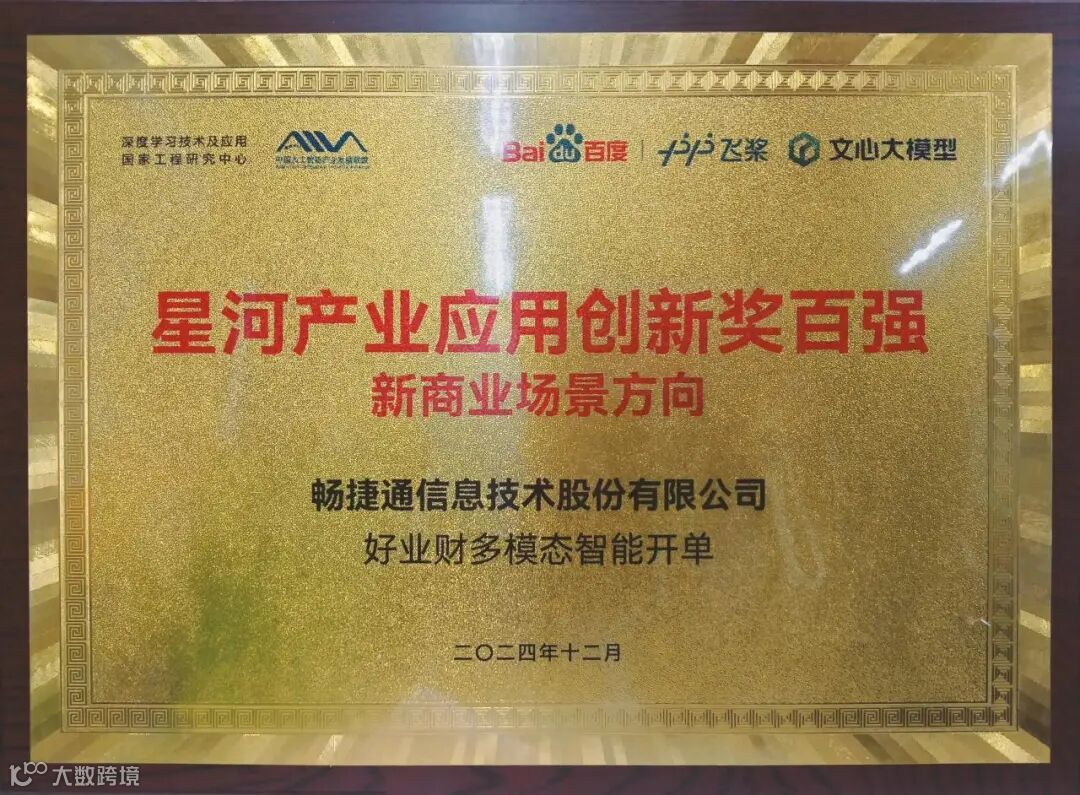 “星河产业应用创新奖”是由深度学习技术及应用国家工程研究中心、中国人工智能产业发展联盟等联合指导评选的权威奖项,旨在表彰在AI技术应用领域具有创新力、技术力和价值度的优质产业应用及创新方案。该奖项依托文心大模型和飞桨最新技术和产品,联合多家区域政府单位、头部组织和企业、行业联盟及投资机构,共同遴选出100个年度优质产业应用及创新技术方案。畅捷通好业财能够入围这一榜单,无疑是对其技术创新和应用实践的极大肯定。