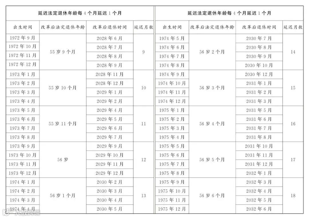 女职工延迟法定退休年龄一览表