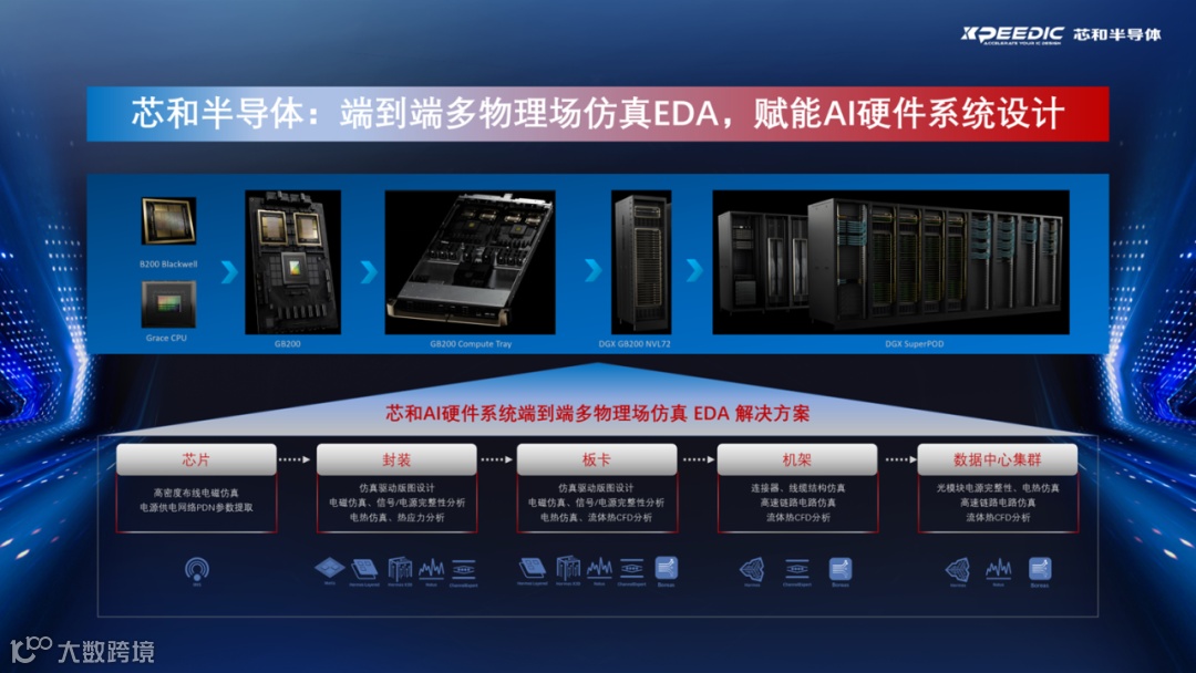 芯和半导体过去几年通过与Chiplet生态圈的合作伙伴共同开发,已经形成了完整的端到端的多物理场仿真EDA平台,专为赋能AI时代的硬件系统而准备。参考英伟达的案例,这个平台从芯片、封装、到板卡、机柜,乃至到最终的集群,芯和半导体都布局了丰富的应用和EDA工具。