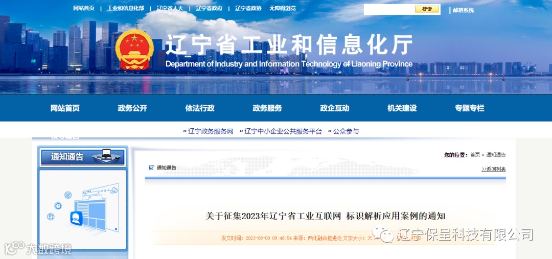 保呈快讯内容:关于《关于征集2023年辽宁省工业互联网 标识解析应用案例的通知》-内容分享