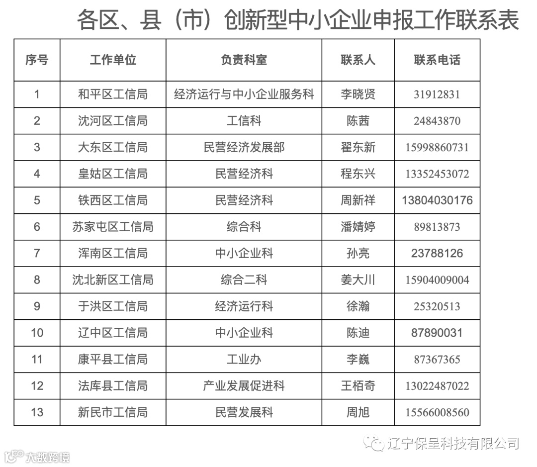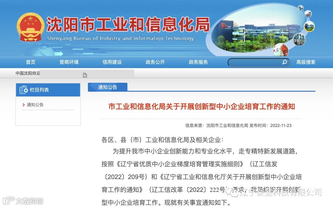 辽宁保呈科技有限公司本期保呈快讯内容:关于《沈阳市工业和信息化局关于开展创新型中小企业培育工作的通知》-内容分享