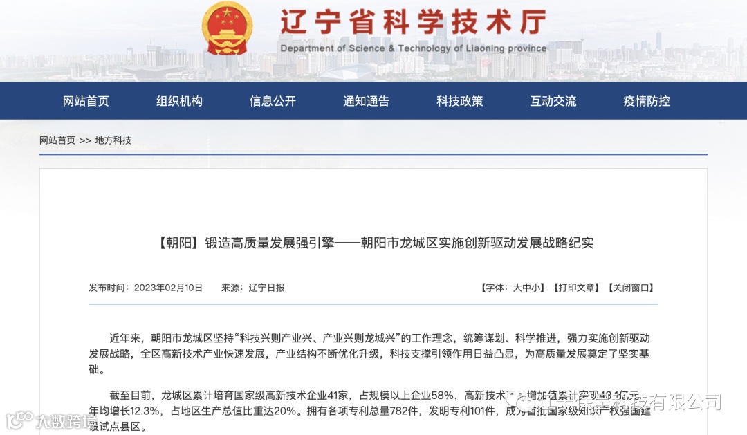 辽宁保呈科技有限公司本期保呈-快讯内容:关于《朝阳市锻造高质量发展强引擎——朝阳市龙城区实施创新驱动发展战略纪实》-内容分享