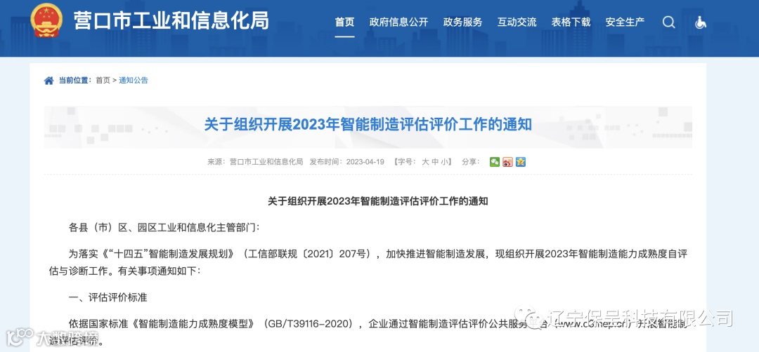 本期保呈-快讯内容:关于《营口市关于组织开展2023年智能制造评估评价工作的通知》-内容分享