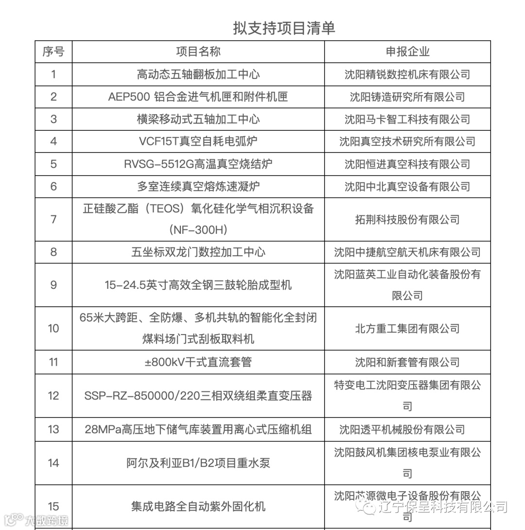 辽宁保呈科技有限公司本期保呈快讯内容:关于《沈阳市工信局关于2022年度首台套重大技术装备拟支持项目公示》-内容分享