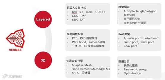 Hermes是芯和半导体的一款功能强大的三维全波电磁仿真工具,主要包括两个模块:Hermes Layered和Hermes 3D,如图2。这两个模块可以互相兼容,使得工程师们在建模和仿真分析连接器时可以更加便捷。