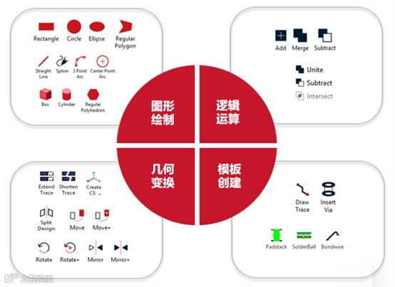 在Hermes 3D模块中,工程师可以使用丰富的图形绘制功能来创建高速连接器模型。支持的绘图功能包括: