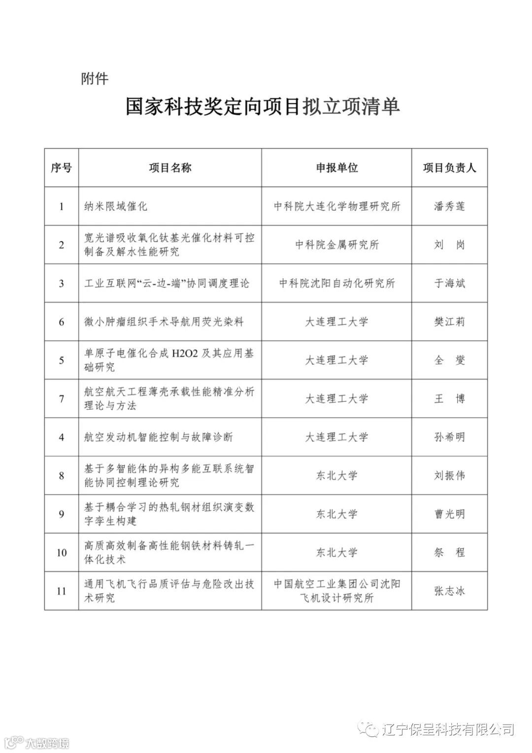辽宁保呈科技有限公司本期保呈快讯内容:关于《国家科技奖定向项目拟立项公示》-内容分享