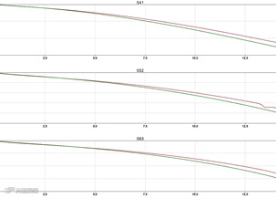 仿真求解完毕后,可方便地使用芯和半导体的SnpExpert工具进行S参数的批量查看及对比,下图红色曲线为Hermes求解结果,绿色曲线为业界知名的某FEM求解软件结果。从左到右依次为回波损耗、插损及隔离度,其中插损相差不超过0.08dB。