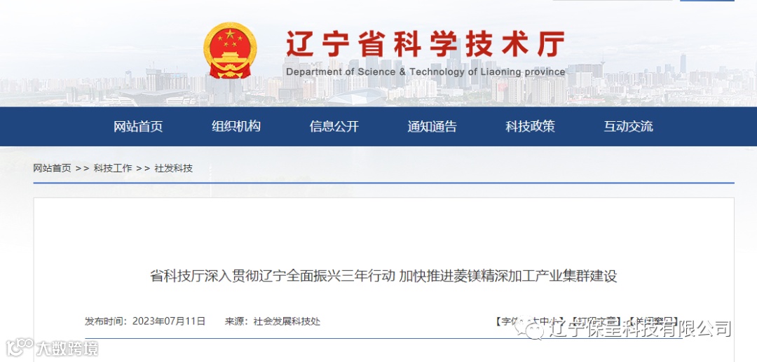 辽宁保呈科技有限公司本期保呈快讯内容:关于《省科技厅深入贯彻辽宁全面振兴三年行动 加快推进菱镁精深加工产业集群建设》-内容分享