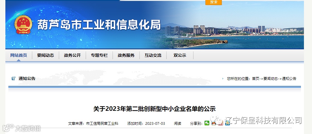 本期保呈快讯内容:关于《关于2023年第二批创新型中小企业名单的公示》-内容分享