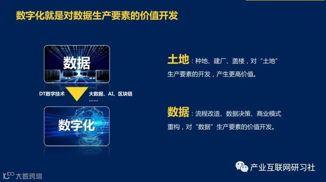 指应用数字技术和数据资源为传统产业带来的产出增加和效率提升,是数字技术与实体经济融合的过程。利用现代信息技术对传统产业进行全方位、全角度、全链条的改造。简单来说,就是对传统行业进行数字化改造。