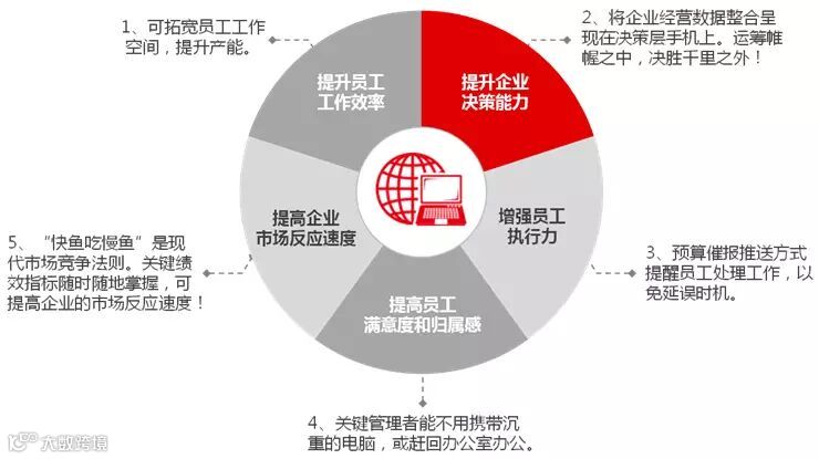 移动审批:领导利用空隙时间及时处理审批业务,缩短报销周期。只要新审批事项出现,系统就会自动推送到相关人的智能终端,审批人只需要在终端上点击同意即可,打破地域限制,加速处理交易。此外能够在多移动终端上进行业务申请,大大提升工作的便捷性。