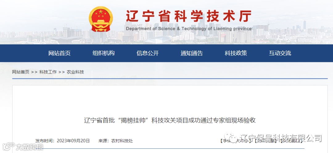 保呈快讯内容:关于《辽宁省首批“揭榜挂帅”科技攻关项目成功通过专家组现场验收》-内容分享