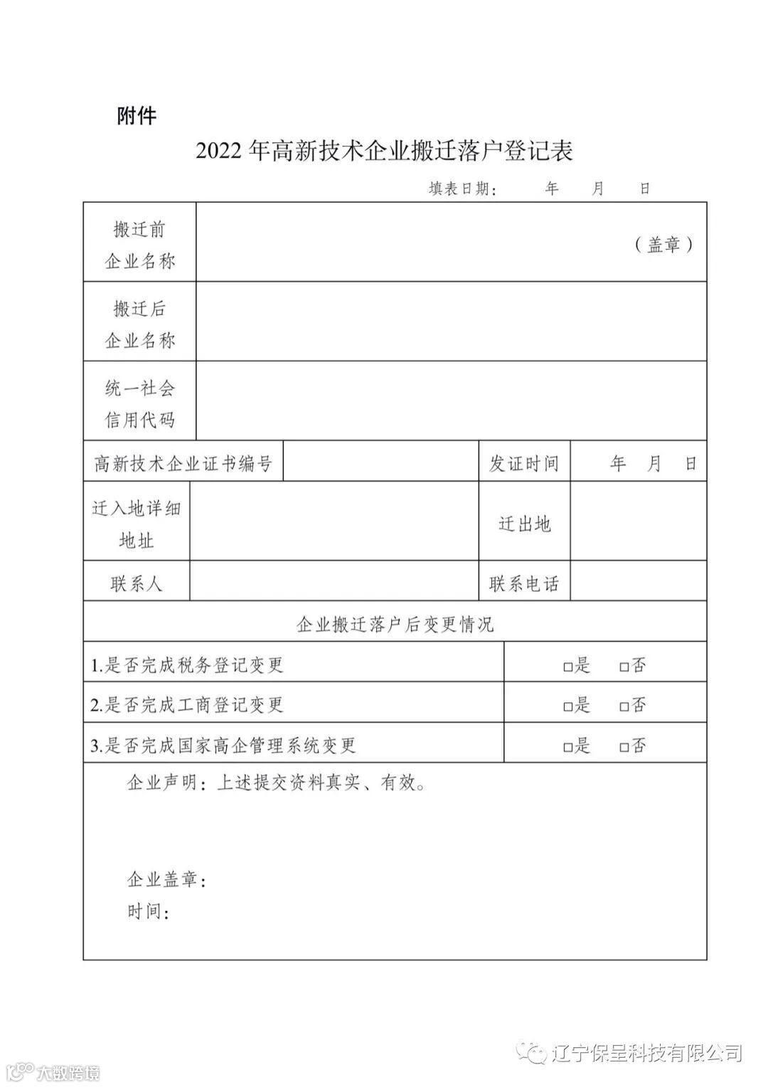 2022年高新技术企业搬迁落户登记表.wps