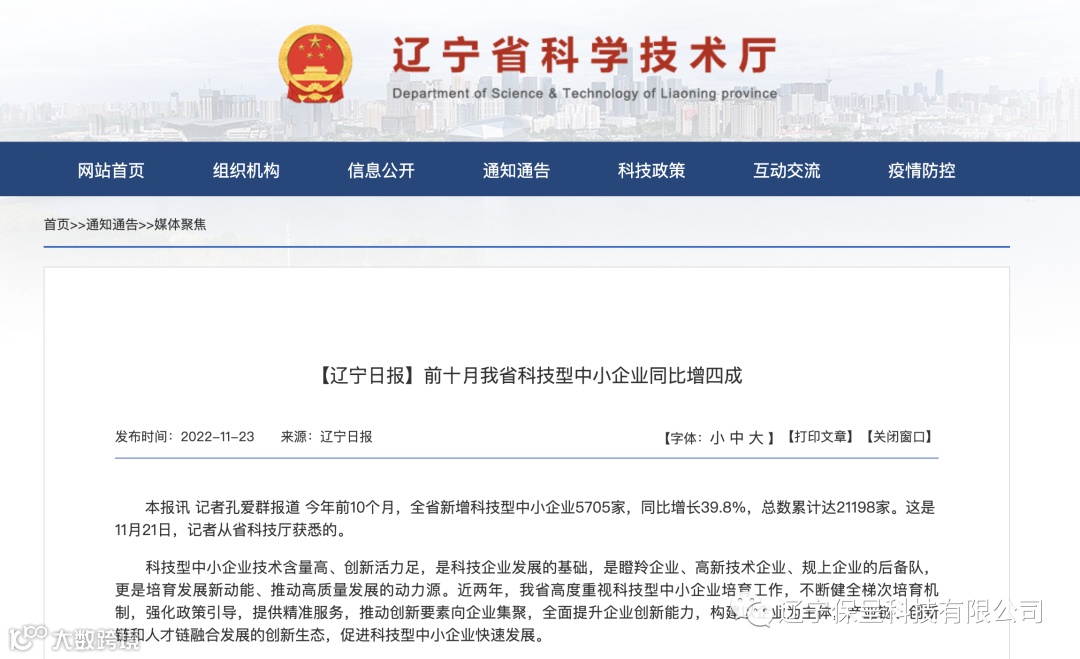 辽宁保呈科技有限公司本期保呈快讯内容:关于《辽宁省2022年前十月科技型中小企业同比增四成&科技企业既要“出苗快”更要“长得好”》-内容分享