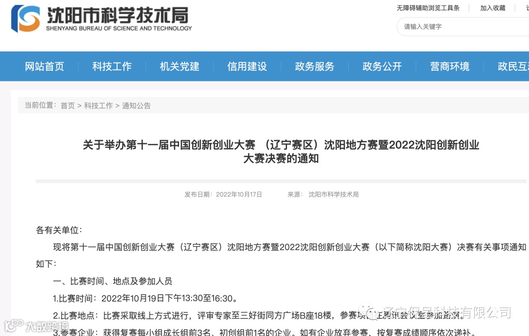 辽宁保呈科技有限公司本期保呈快讯内容:关于《沈阳市关于举办第十一届中国创新创业大赛 (辽宁赛区)沈阳地方赛暨2022沈阳创新创业大赛决赛的通知》-内容分享