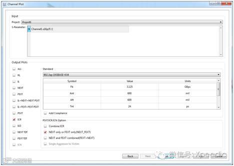 除了添加标准红线之外,根据导入的S参数文件还可以进行近端串扰、远端串扰、ICR等数据的计算。在Channel菜单下选中Xtalk命令,会弹出图21所示的通道串扰计算界面。对于导入的S参数中包含的所有通路,软件自动给出这些通路对应的所有串扰源。用户只需要跟随向导点击Next按钮,在图22界面中选择需要计算的项目,然后点击Plot按钮,就可以立即得到各类串扰曲线。