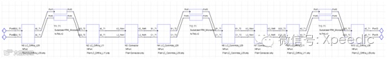 差分链路拓扑搭建功能在各类EDA仿真软件中都有,其中最为典型的就是图17所示的ADS的手动搭建方式。ADS中也有S参数、传输线等多个模块,这些模块之间需要用户根据端口顺序手动连线。这一过程较为繁琐,一旦出现端口顺序弄错,往往要从头检查整个拓扑连线。