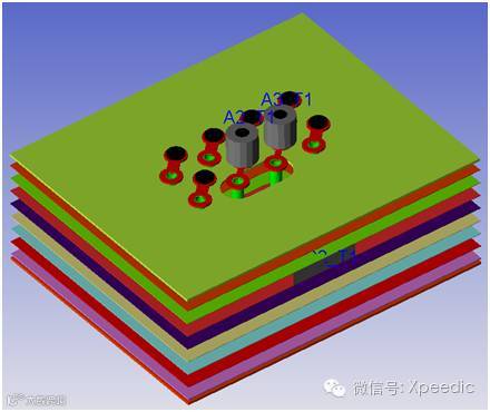 图3 使用Via Expert自带的各种Template建出PCB上各种孔的模型