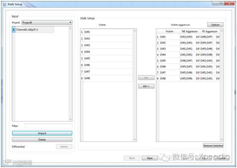 在SnpExpert中新建一个工程,将仿真得到的通道S参数文件导入,导入界面如图18所示。Snp Expert会根据S参数文件内部的信息自动进行端口分类,如果用户发现软件端口分类有误,还可以通过Pin Direction一栏下的选项进行调整。