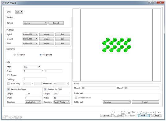 除了BGAVia和AC Cap之外,要仿真高速串行链路,还需要建模高速连接器在PCB上的Footprint信号通孔,ViaExpert同样提供了对应的建模Template。在图3界面中选择Model With Footprint模板,就会弹出图8所示的BGAVia建模向导。