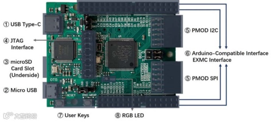 双排标准2.54mm排母接口:Arduino兼容接口(外侧),EXMC扩展接口(内侧) -