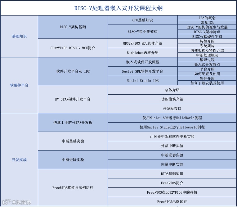 为了帮助开发者快速学习并掌握RISC-V嵌入式开发的软硬件相关技术,芯来科技特推出《RISC-V处理器嵌入式开发》课程。