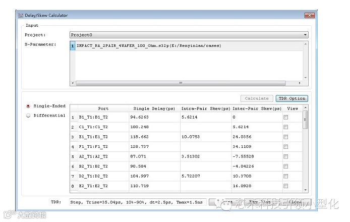 Built-in skew calculator between two traces in each differential pair.