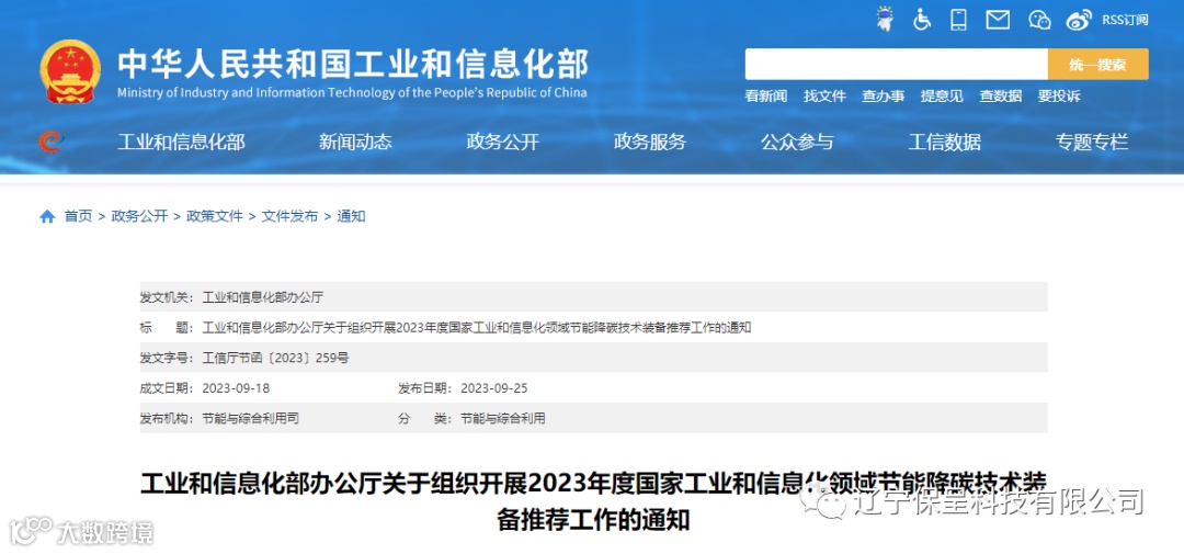 辽宁保呈科技有限公司保呈快讯内容:关于《工业和信息化部办公厅关于组织开展2023年度国家工业和信息化领域节能降碳技术装备推荐工作的通知》-内容分享