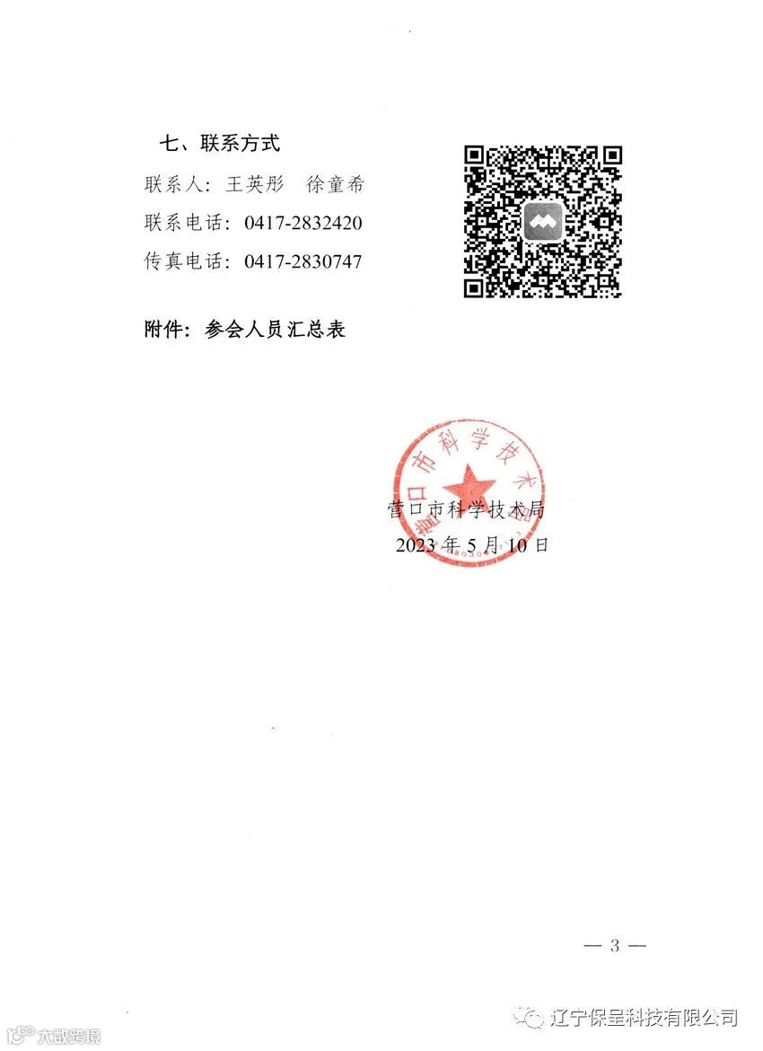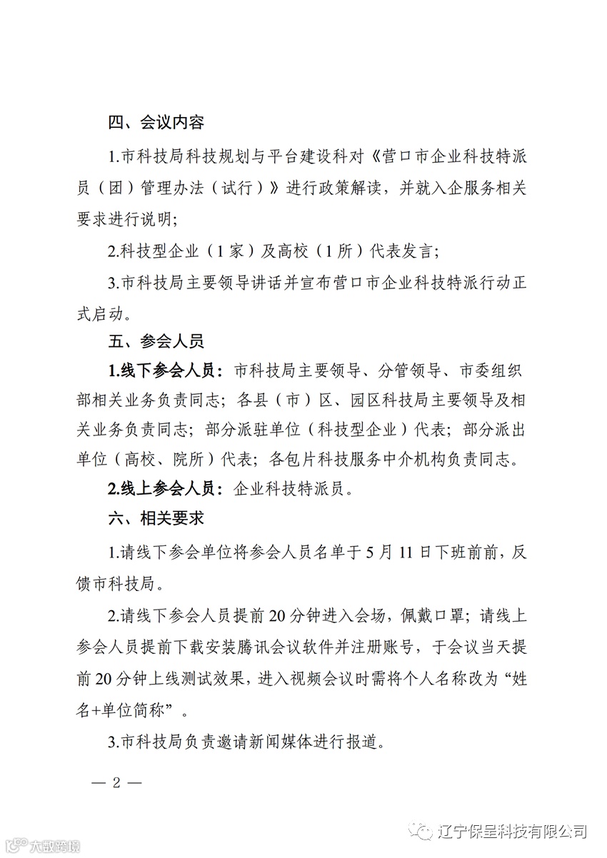 本期保呈-快讯内容:关于《营口市关于举办营口市企业科技特派员(团)入企服务培训会议暨启动仪式的通知》-内容分享