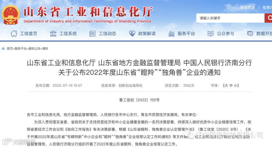 本期保呈快讯内容:山东省工业和信息化厅 山东省地方金融监督管理局 中国人民银行济南分行关于《公布2022年度山东省“瞪羚”“独角兽”企业的通知》-内容分享