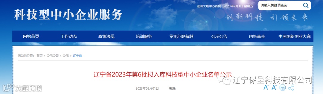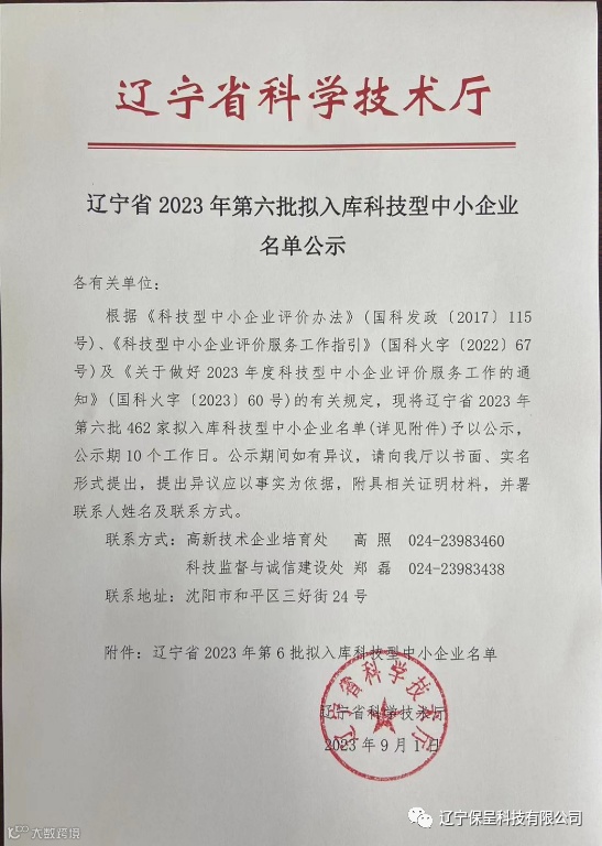 保呈快讯内容:关于《辽宁省2023年第6批拟入库科技型中小企业名单公示》-内容分享