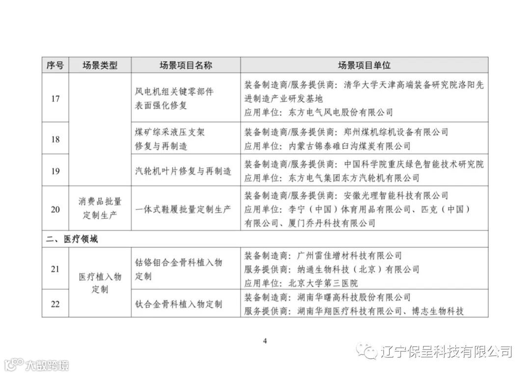 本期保呈快讯内容:关于《工业和信息化部办公厅关于公布增材制造典型应用场景名单的通知》-内容分享