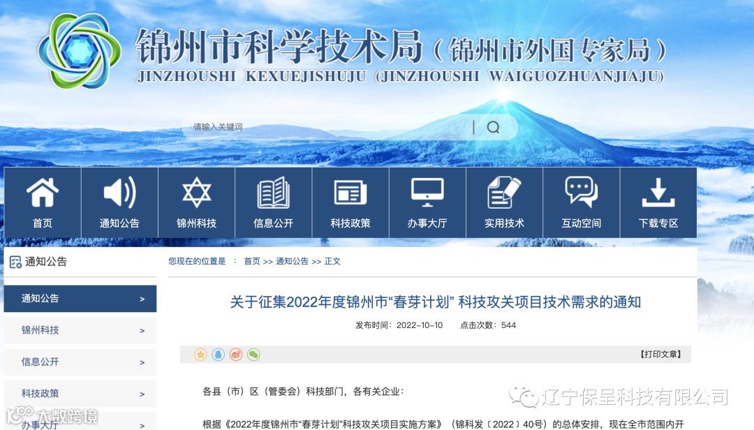 本期保呈快讯内容:关于《锦州市关于征集2022年度锦州市“春芽计划” 科技攻关项目技术需求的通知》-内容分享