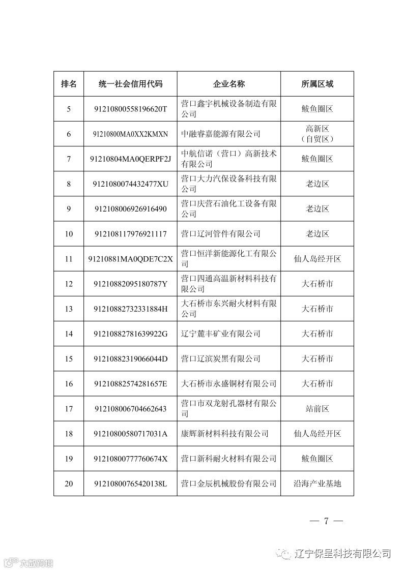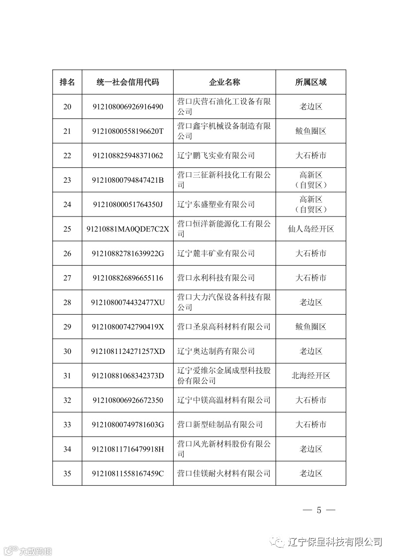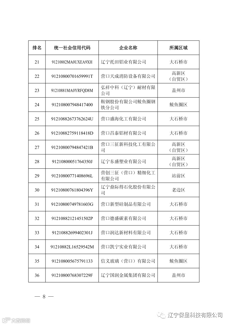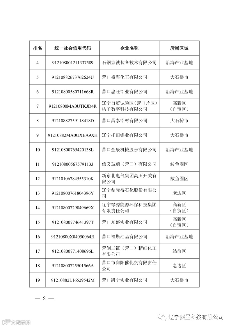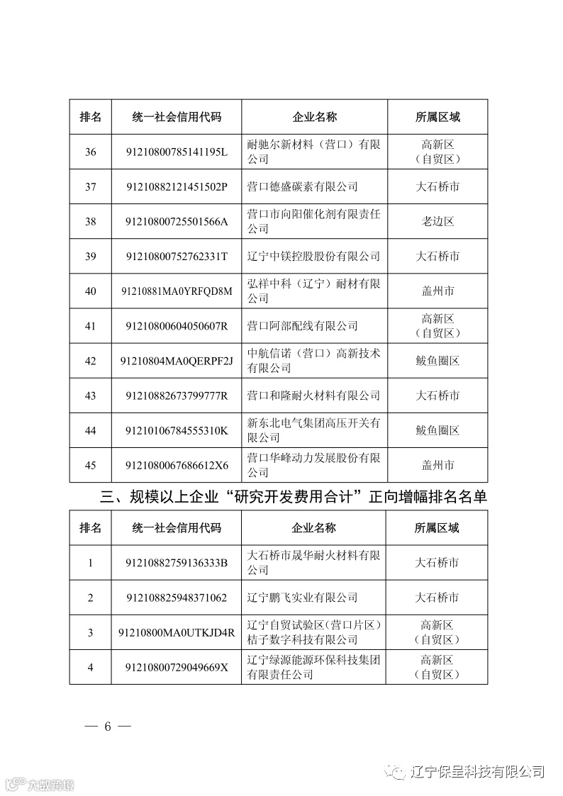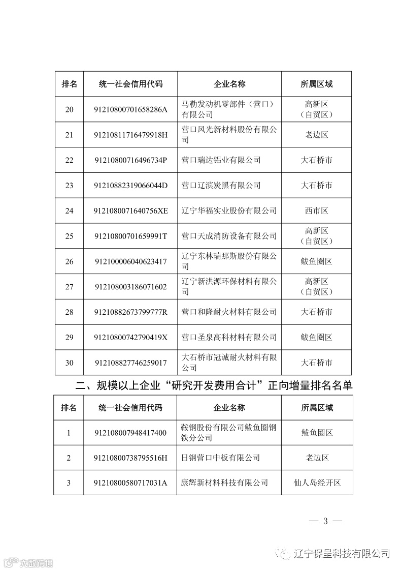 本期保呈快讯内容:关于《营口市关于2021年度营口市企业研发投入后补助部分企业排名的公示》-内容分享