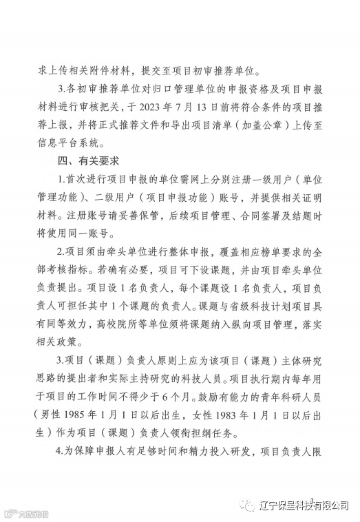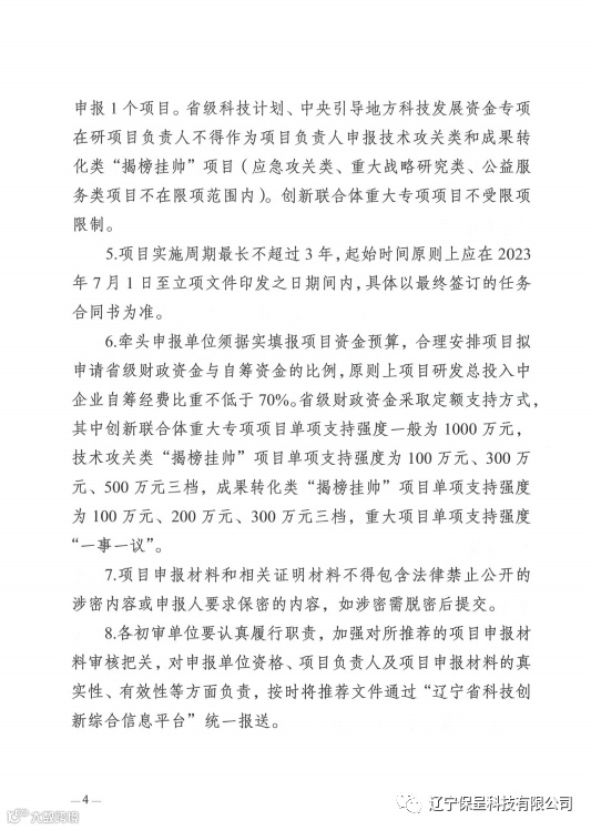 辽宁保呈科技有限公司本期保呈快讯内容:关于《沈阳市科技局关于开展2023年辽宁省“揭榜挂帅”科技项目申报工作的通知》-内容分享