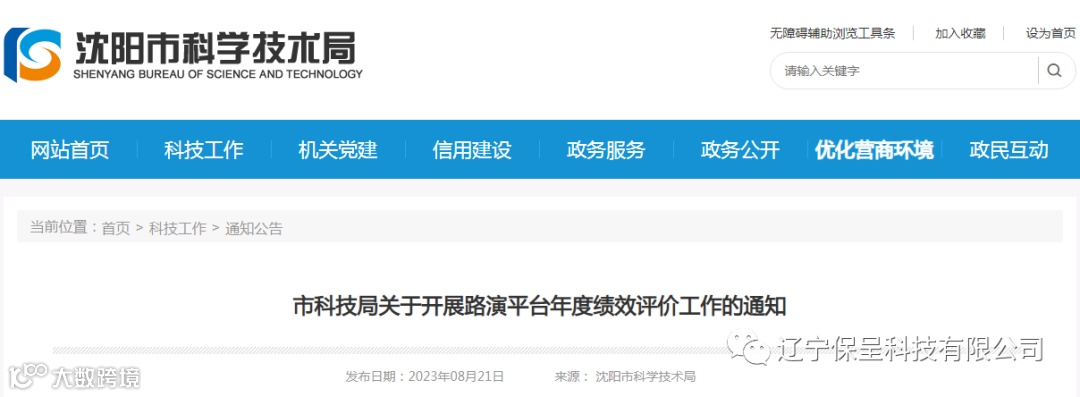 保呈快讯内容:关于《沈阳市科技局关于开展路演平台年度绩效评价工作的通知》-内容分享