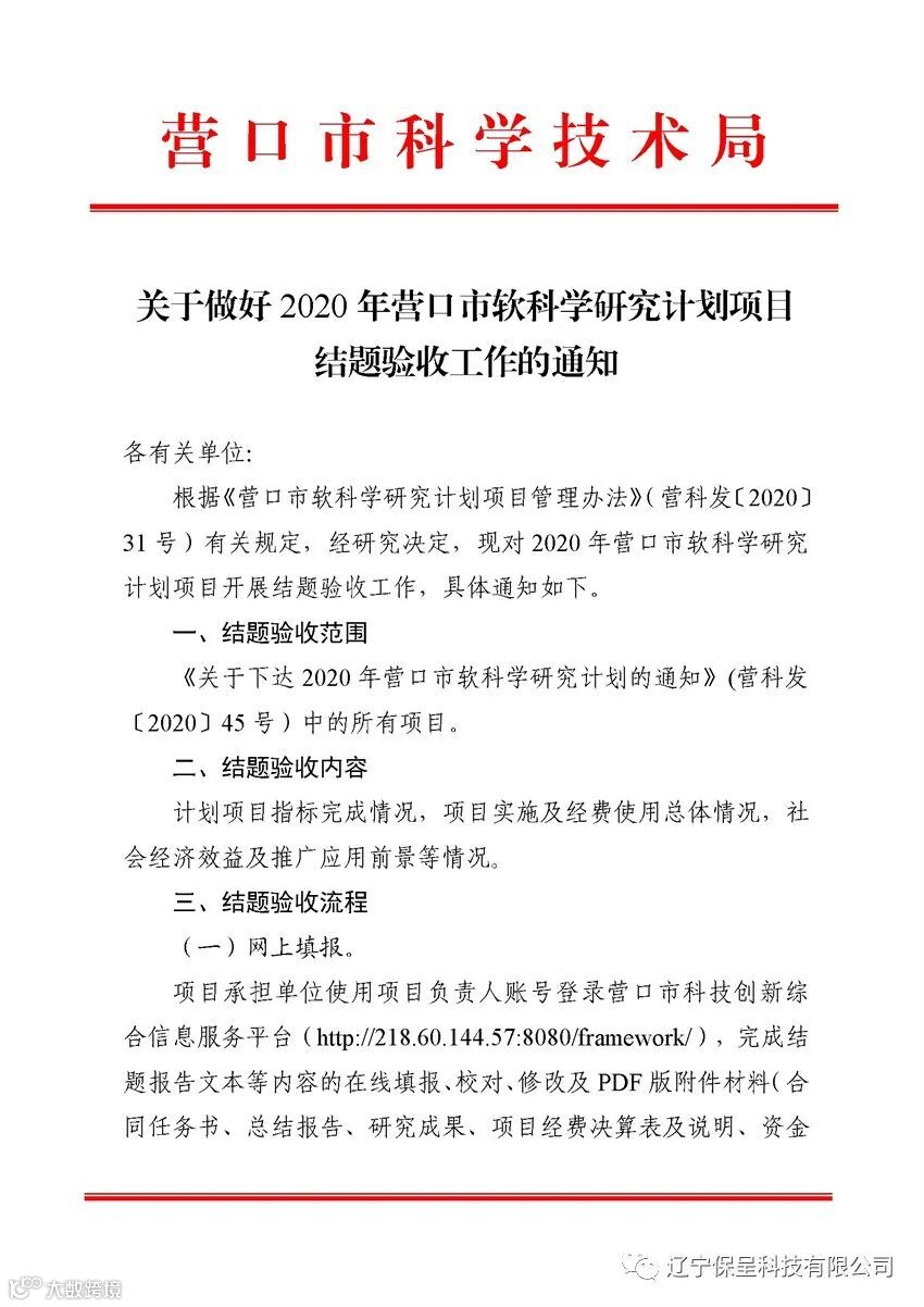 本期保呈-杨乔雯🐑快讯内容:关于《做好2020年营口市软科学研究计划项目结题验收工作的通知》-内容分享