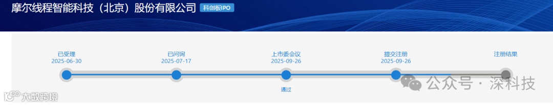 经过两轮问询后,摩尔线程 IPO 于 9 月 26 日顺利过会,并且在同一天提交了注册申请。