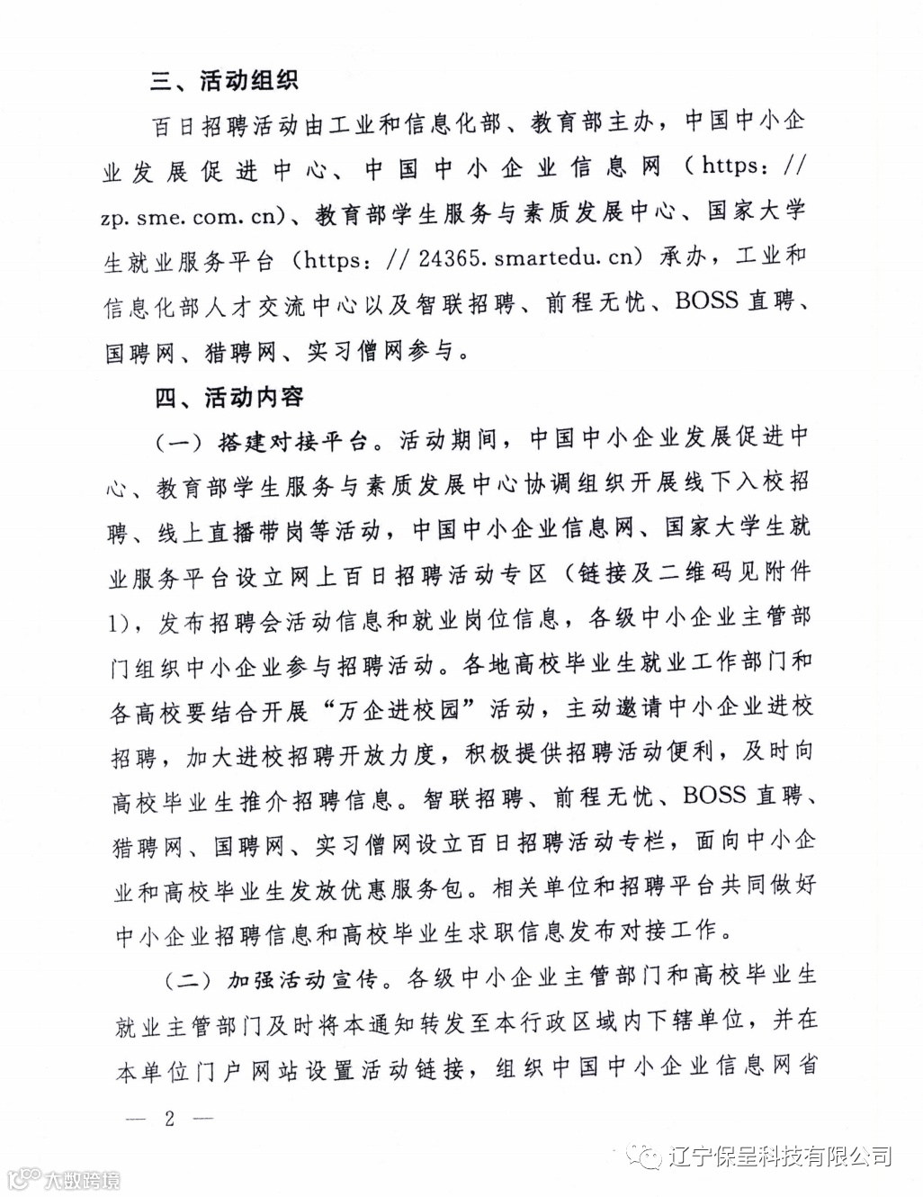 辽宁保呈科技有限公司本期保呈-快讯内容:关于《关于转发工业和信息化部办公厅 教育部办公厅开展2023年全国中小企业网上百日招聘高校毕业生活动的通知》-内容分享