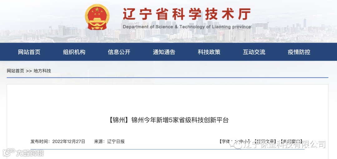 辽宁保呈科技有限公司本期保呈快讯内容:关于《锦州市今年新增5家省级科技创新平台》-内容分享