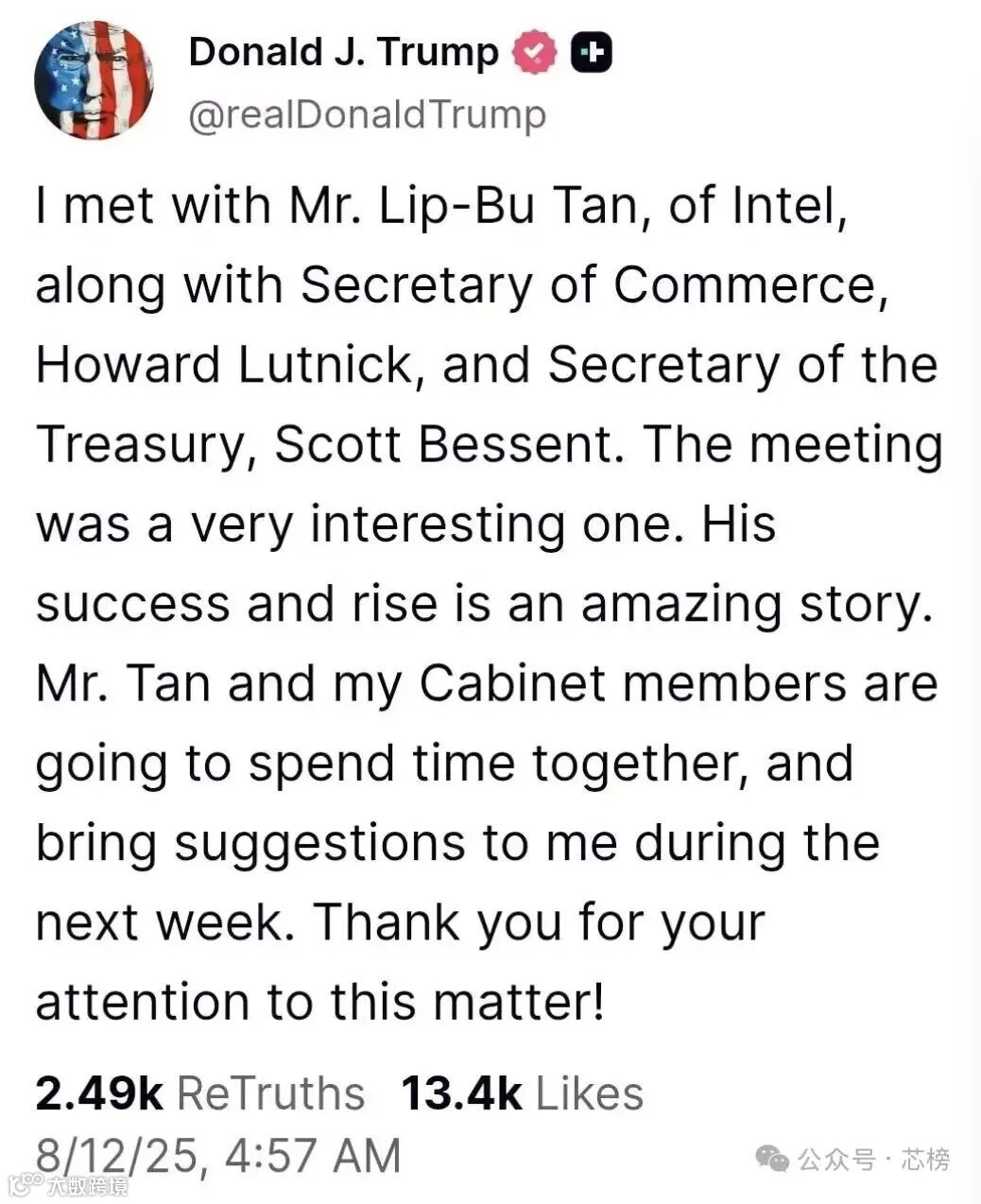 特朗普还暗示,他可能会很快就此事与英伟达CEO黄仁勋会面谈判。