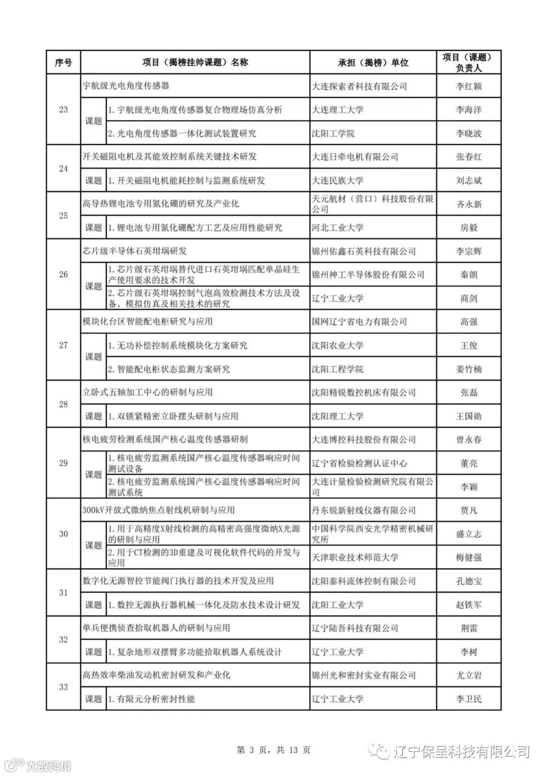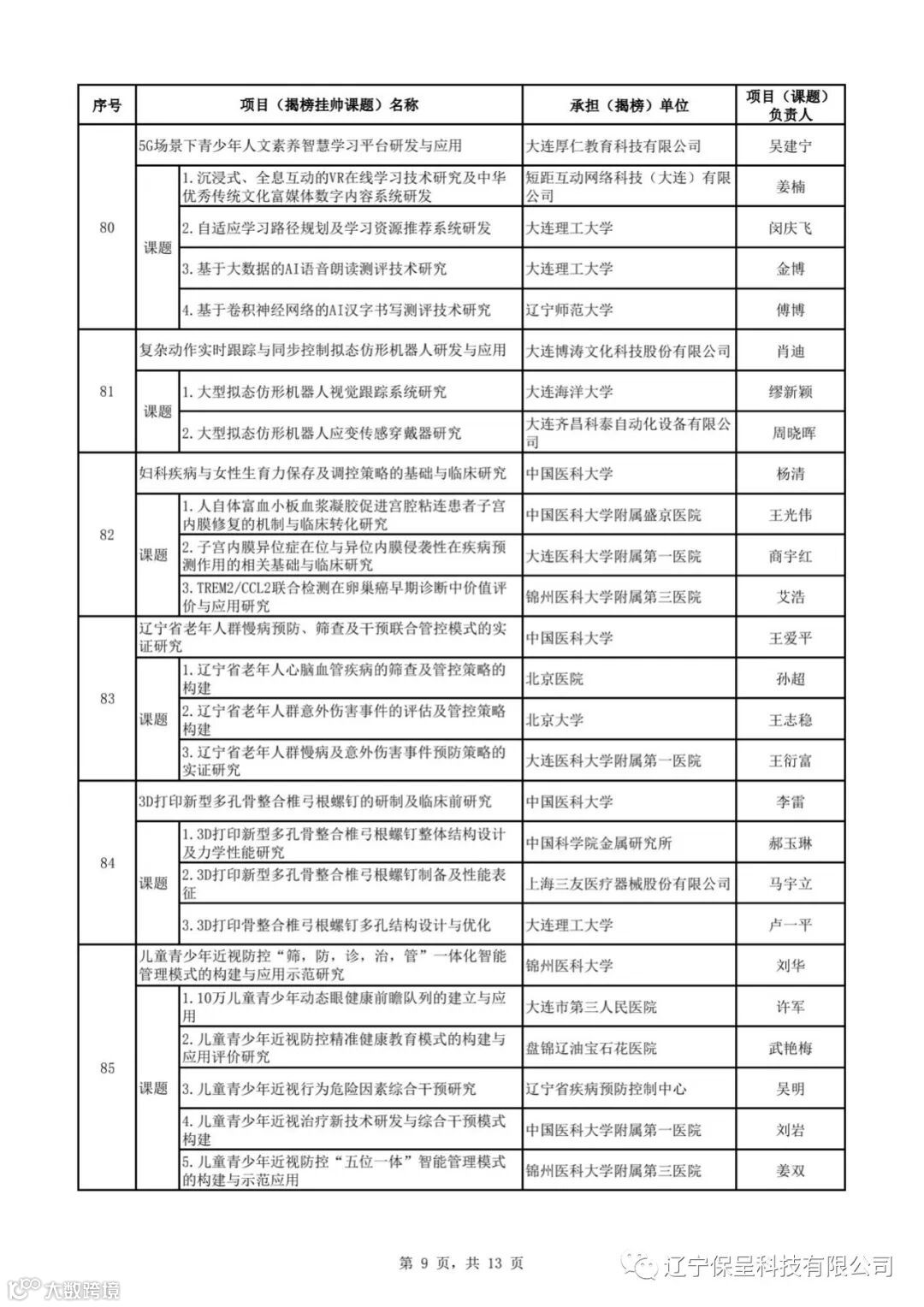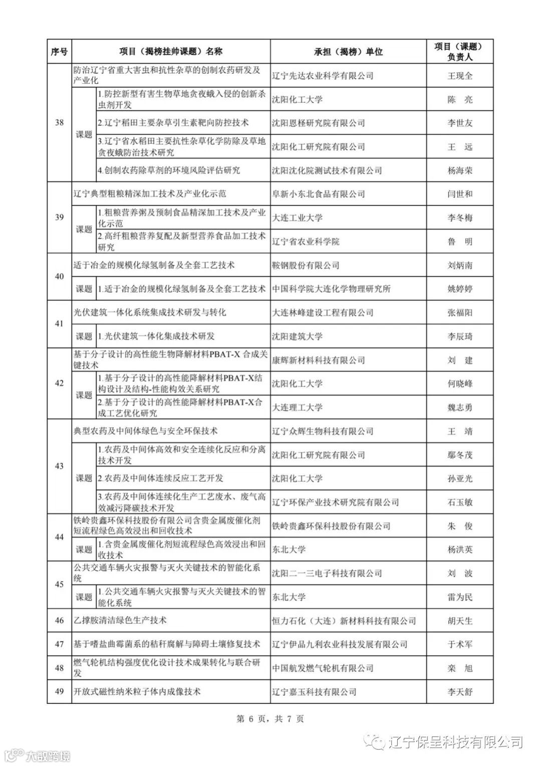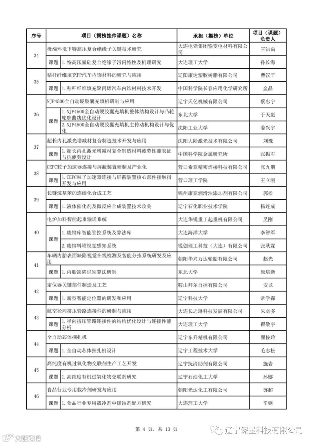 本期保呈快讯内容:关于《2022年辽宁省“揭榜挂帅”科技计划(重大/重点)项目拟支持清单》-内容分享